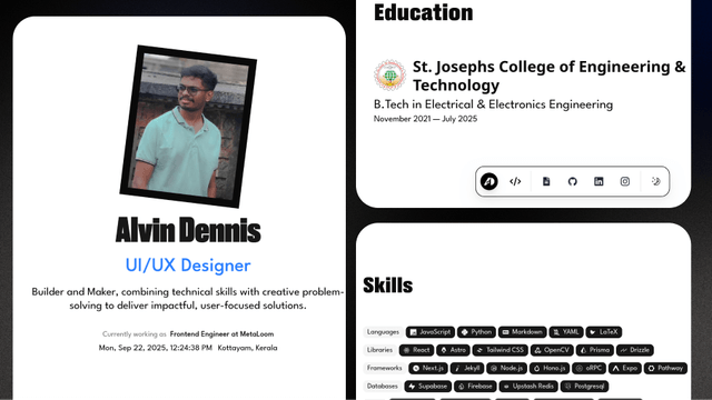 A minimal personal developer portfolio template built with Astro, Shadcn-UI, Tailwind CSS, and React.