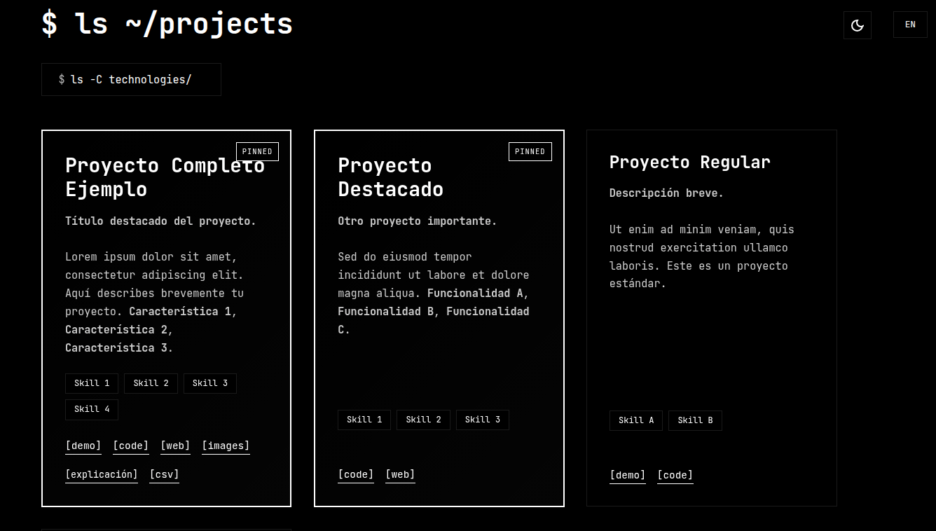 A minimalist tech portfolio template with terminal-inspired design, built for developers and tech professionals who appreciate clean aesthetics and powerful functionality.